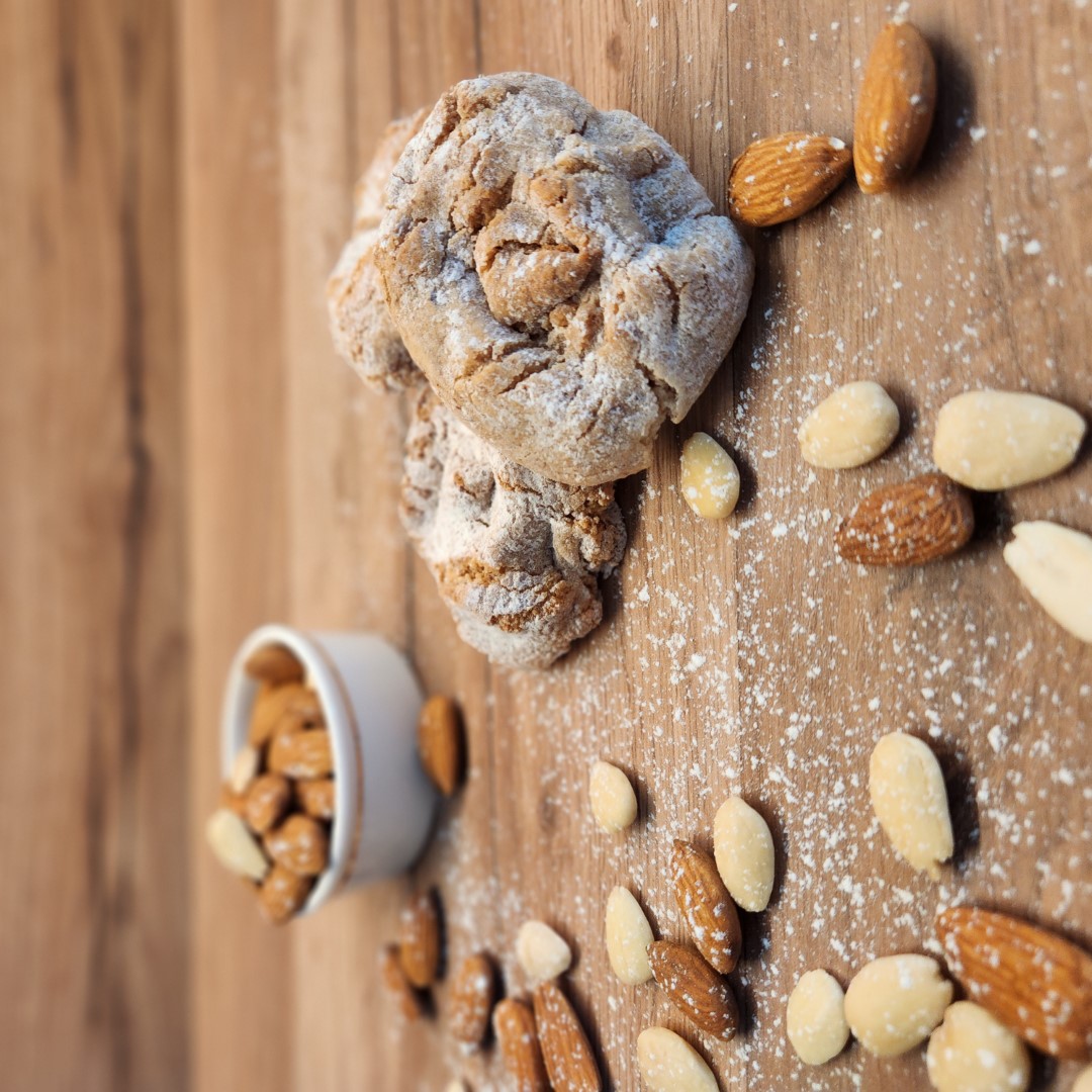 Oben ein klassisches Amaretti. Füllung aus feinstem Grappamousse mit Grappa aus dem Hause Ramazzotti und in edler Couverture getunkt.